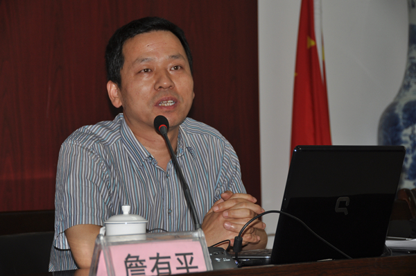 5月15日下午,学校处级以上领导干部学习贯彻习近平总书记来陕视察重要讲话精神专题培训班在长安校区第五会议室举行第五场专题报告会,邀请我校政治经济系詹有平副教授做专题辅导报告。