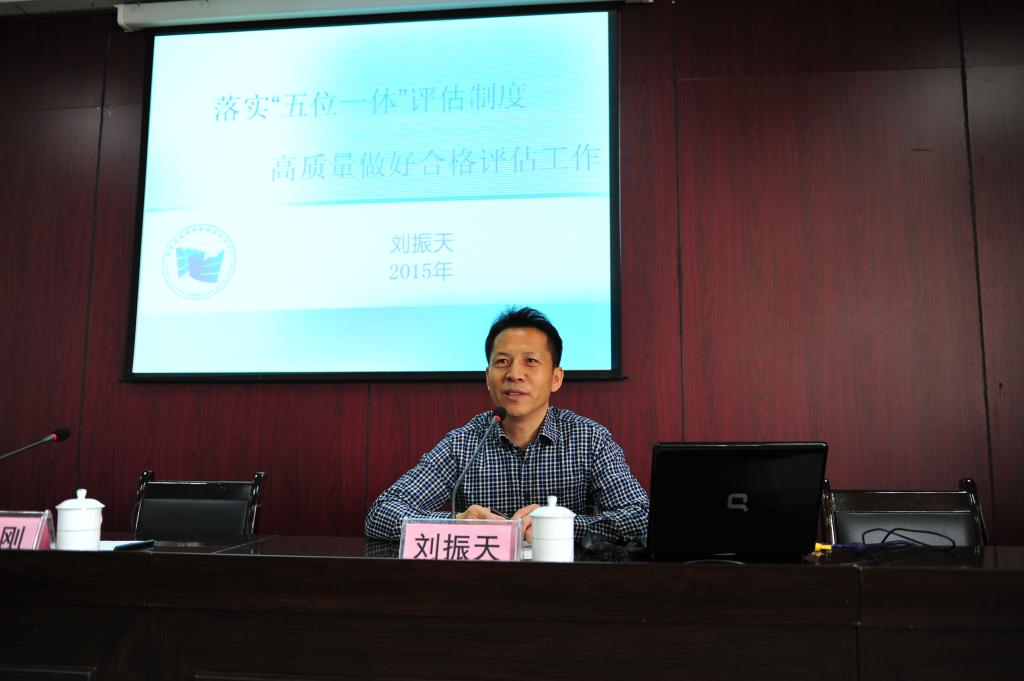 刘振天教授在报告中,以丰富翔实的数据和资料回顾了国内外开展高等教育评估工作的历史和进程,特别是结合我国高等教育改革和发展的状况,从自我评估、院校评估、数据监测、专业认证和国际评估等五个方面,对我国新时期“五位一体评估”的特点和主要内容,作了详细的介绍;从新建本科院校情况、合格评估概况、数据采集和质量报告情况、合格评估的五新(新思路、新理念、新标准、新方法、新技术)、合格评估方案的内涵等五个方面,对合格评估进展及方案的核心内容进行了详细的讲解;从进一步落实办学定位、不断加强师资队伍建设、在办学条件上加大投入、进一步提升质量管理、以平常心正常态对待评估,以及评估要做到全员、全程、全面等六个方面,提出了学校如何做好合格评建工作的要求。