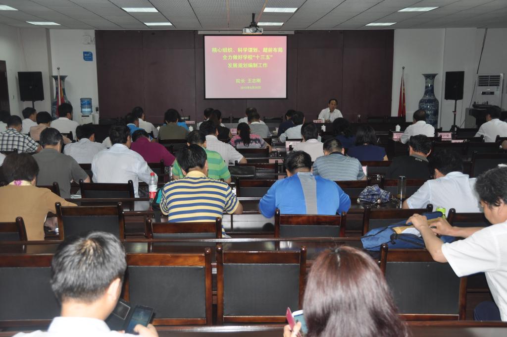 院长王志刚以《精心组织、科学谋划、超前布局 全力做好学校“十三五”发展规划编制工作》为题,从深刻认识编制好学校“十三五”发展规划的必要性和重要性、如何做好“十三五”发展规划编制工作和做好“十三五”发展规划需要处理好的几个关系三个方面作了动员。他指出,按发展规划办学是现代大学治理的一种重要手段;制定和实施发展规划是适应高等教育发展新常态、引领新常态的需要;编制好“十三五”规划是推进学校治理体系和治理能力现代化的需要。